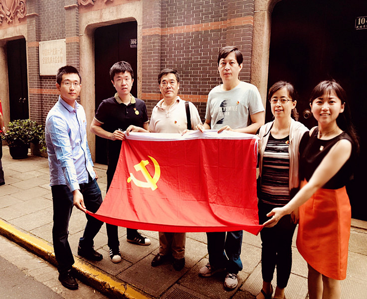 习近平总书记说过:“不忘历史才能开辟未来,善于继承才能善于创新”。为了让新党员同志能够更好地了解历史,不忘初心,继承辉煌,传承希望,七一前夕,电信联合支部的党员教师们追寻着历史的足迹,怀着激动的心情,参观中国共产党第一次全国代表大会会址并举行汪楠老师和叶炯耀老师的入党宣誓活动。同时,为了更好的注重群众工作落到支部,让群众感觉到党支部的存在,也让党支部时掌握群众思想动态,真实了解和及时反映群众需求和诉求,服务群众,促进社会和谐,使党支部真正发挥教育党员、团结群众的堡垒作用,支部还特地邀请了退休老党员朱奇老师、退休老教师陆中成老师列席参加了宣誓仪式。