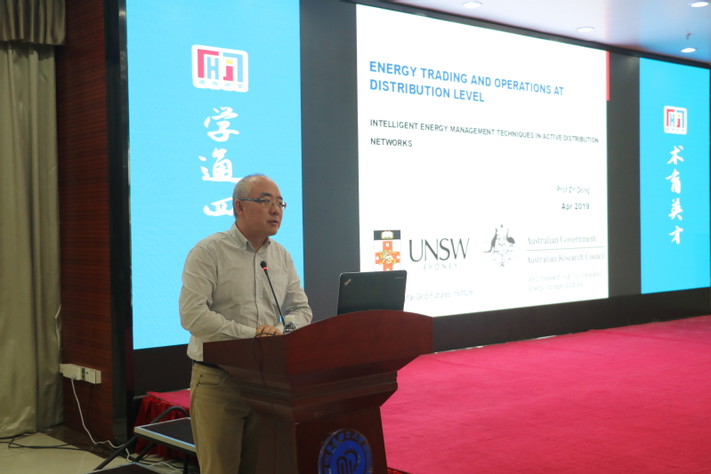 4月26日下午,第三十一期“通海讲堂”在奉贤校区图文信息中心通海厅举行,澳大利亚新南威尔士大学董朝阳教授带来了题名为“配网市场能源交易与系统运行”的精彩讲座,为大家讲述配网市场能源交易新趋势与系统运行理论,本次讲座由日本三级 党委书记侍洪波主持。