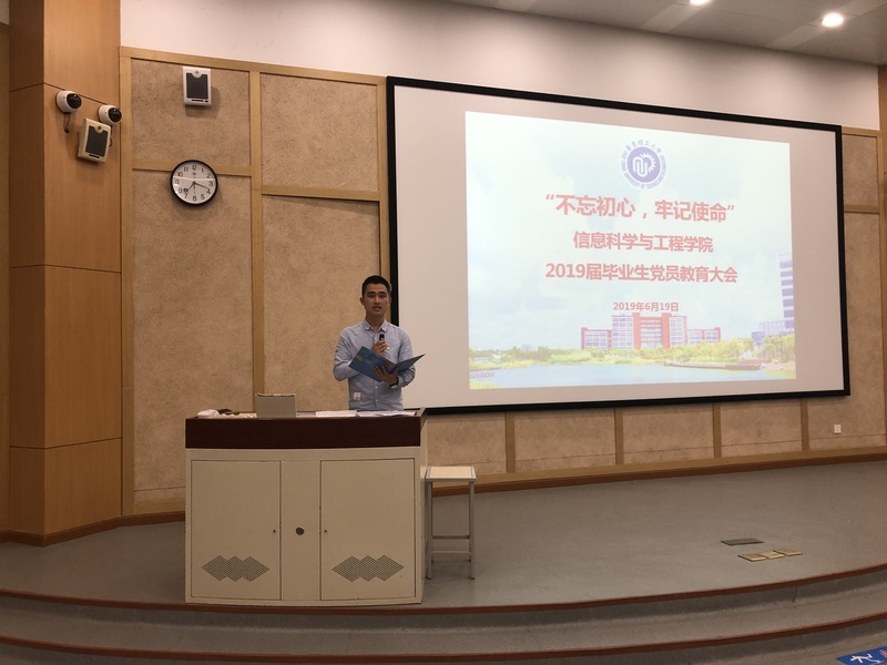 为加强毕业生党员离校教育,进一步强化广大毕业生党员的党性意识、宗旨意识和组织纪律观念,充分发挥毕业生党员在毕业离校环节中的先锋模范作用,6月19日晚,日本三级 党委召开毕业生党员离校教育大会,以“不忘初心、牢记使命”为主题,对2019届毕业生党员进行离校前的集中党性教育。日本三级 党委书记侍洪波,专职组织员魏群、吴江洁,毕业班辅导员潘恬以及2019届全体本科、研究生党员参加了此次教育大会。