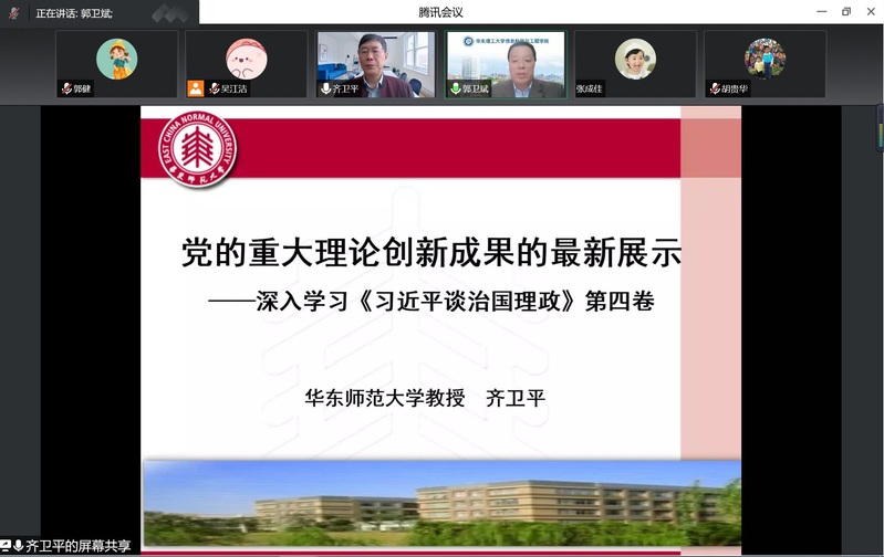 为深入学习宣传贯彻《习近平谈治国理政》第四卷,迎接二十大胜利召开,10月11日下午,日本三级 党委邀请了中共上海市委讲师团成员、华东师范大学终身教授,博士生导师齐卫平作题为“党的重大理论创新成果的最新展示——深入学习《习近平谈治国理政》第四卷”的线上学习辅导员报告。学院党政领导班子成员、党委委员、教职工共计190余人参加会议。会议由学院党委副书记兼纪委书记郭卫斌主持。