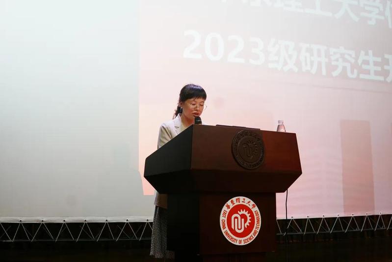 此后,伍甜甜同学、杜培浩同学、刘志伟同学作为研究生代表发言,他们分享了各自在华理学习生活的成长经历,也总结了几点学习心得:首先是注重日常的积累,厚积薄发;第二是找到适合自己的学习节奏,敢于推动自己跳出舒适区;第三是希望大家保持开放的学习心态,勤于交流协作,善于沟通。同时希望能与大家一起在华理信院勤奋求实,励志明德,成为可堪大用,能担重任的栋梁之才。