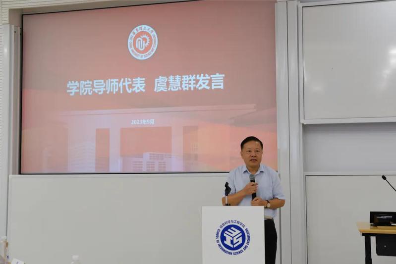首先,学院党委书记侍洪波致辞。他代表全院师生向2023级全体新生表示热烈的欢迎。在新生们开启人生新的旅程之际,侍洪波提出四点希望,与生共勉:一是希望同学们志存高远,用理想责任把稳思想之舵;二是希望同学们踏实求索,用勤劳汗水深耕奋斗之果;三是希望同学们开放严谨,用稳健步伐走好科研之路;四是希望同学们强心健体,用健康体魄筑牢逐梦之基。他表示,同学们作为信院新学子,身处信息技术成为当今世界经济社会发展重要引擎和驱动力的时代,要深知自己肩上负有的使命责任。希望大家秉承“信火相传,孳孳不息”的精神,勤耕不辍,为突破关键核心技术的“卡脖子”封锁,实现自主创新和跨越发展踔厉奋发,勇毅前行。