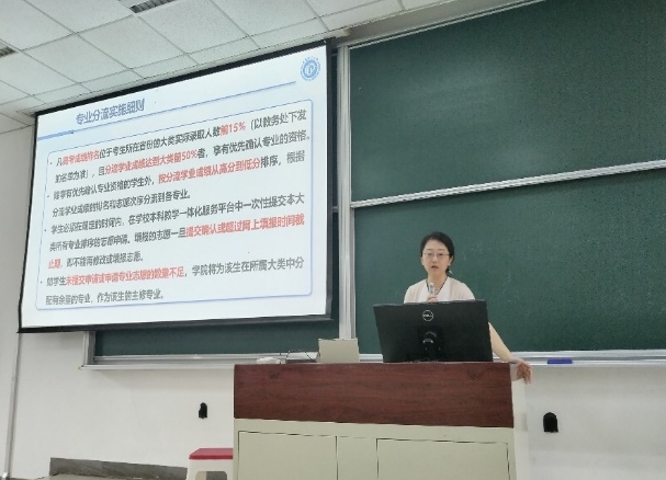 会上谭帅介绍了大类分流工作的安排,对大类分流文件进行解读,帮助同学们把握政策、明晰流程。各专业教授就专业特色、专业前沿、培养目标及发展前景等进行了详细介绍。