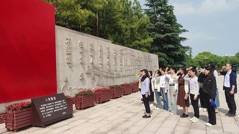 随后,团队一行来到南湖革命纪念馆的宣誓墙前,面向鲜红的党旗,在日本三级 党委副书记许浩的带领下,庄严郑重地重温了入党誓词。铿锵有力的誓词,让大家再次深刻体会到作为一名新时代的党员所肩负的使命和责任。