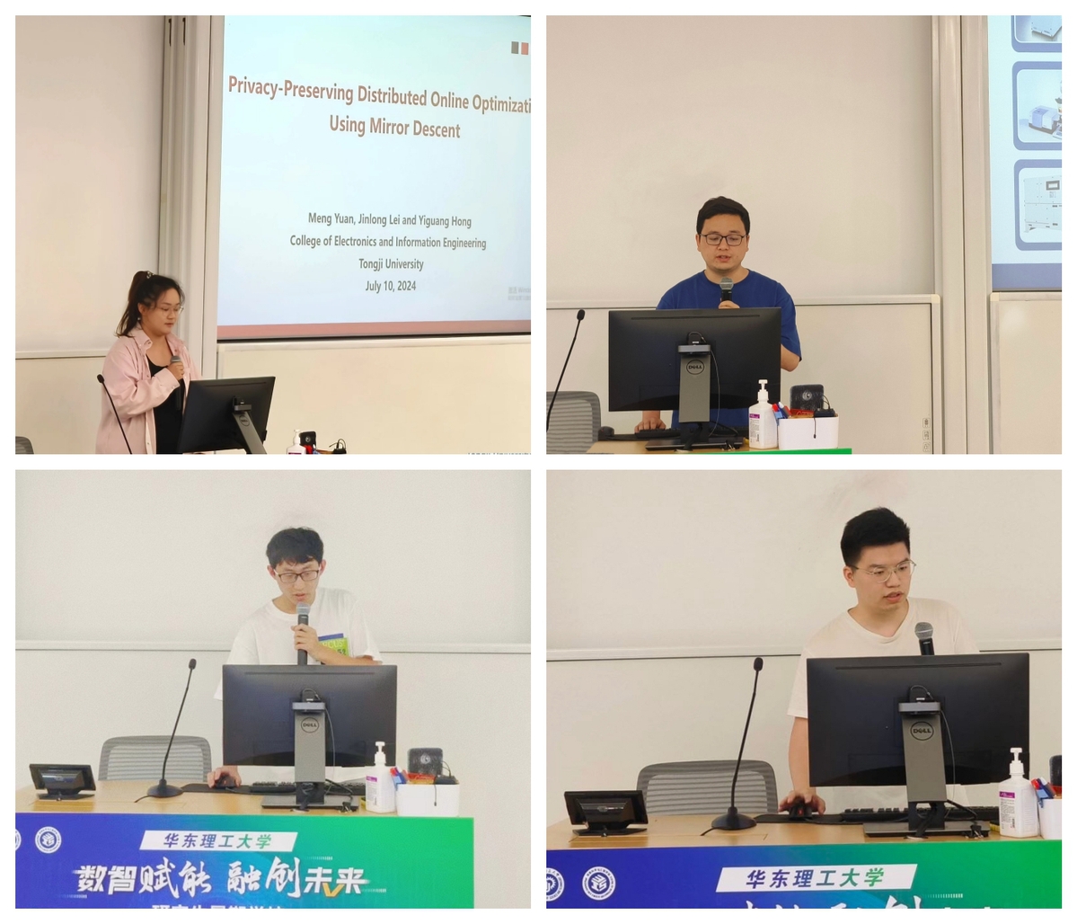 中场茶歇过后,袁萌(同济大学)的《分布式优化的隐私保护研究》、李鱼强(日本三级 )的《基于近红外光谱技术的复杂油品快评分析方法》、张德政(上海海事大学)的《面向城市应急物资配送的多无人机协同路径规划算法》、王皓烨(日本三级 )的《An Unsupervised Online Classification Algorithm for ERP-based Brain-Computer Interfaces》依次呈现。最后进入评分环节,为一天的学术交流画上了圆满的句号。