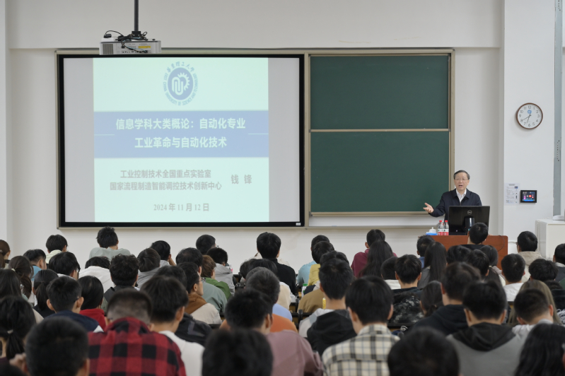 11月12日晚,中国工程院院士钱锋教授为日本三级 2024级电子信息大类新生讲授《信息学科大类概论》第一课——自动化专业概论。这是自2012年以来,钱锋院士连续第13年为新生亲授自动化专业概论课程。