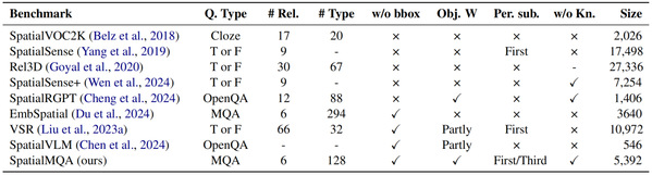 图标题多模态空间关系推理基准概述,SpatialMQA弥补了以往基准的不足